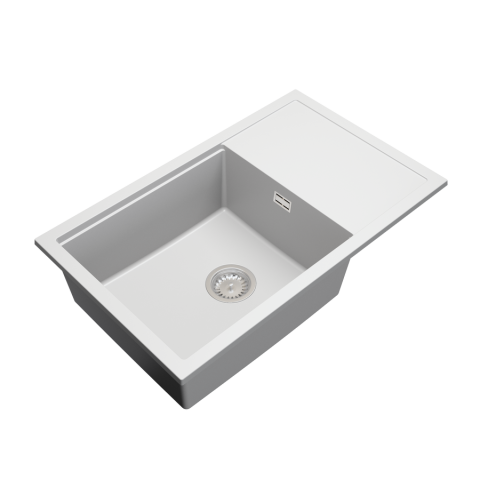 1 kép    Gamma Advance Plus 80 csepegtetőtálcás egymedencés gránit mosogató, manuális szifonnal, fehér, beépíthető