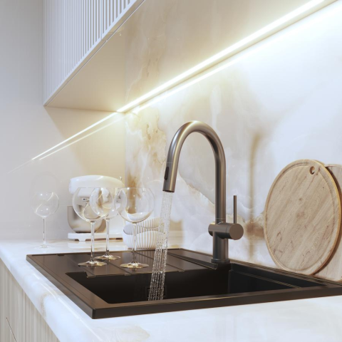 1 kép    Gamma Ana konyhai csaptelep gun grey, beépíthető