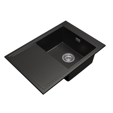 1 kép    Gamma Design 7050 csepegtetőtálcás egymedencés gránit mosogató, manuális szifonnal, fekete, beépíthető