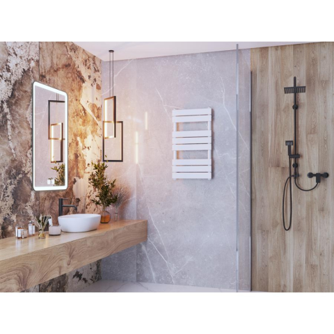 Anyag: Acél. Az acél jó hővezető tulajdonságokkal rendelkezik, így hatékonyan melegíti a fürdőszobát és segít a törölközők gyors szárításában.