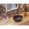 A Gamma Negra munkalapra helyezhető mosdókagyló, amely illeszkedik a modern belsőépítészeti trendekhez. A munkalapra helyezve a fürdőszoba központi dekorációja lesz, különösen azért, mert érdekes formájával vonzza a figyelmet. A Gamma Negra mosdó, mérete 410x330 mm. Mélysége 150 mm, így a víz nem fröccsen a munkalapra a mindennapi higiéniai tevékenységek során. A Gamma Negra mosdó, fekete színben tökéletes a nagy fürdőhelyiségekhez és kis fürdőszob