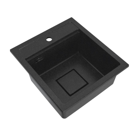 1 kép Gamma QUADRO 4550 gránit mosogató automata dugóemelő, szifonnal, fekete-szemcsés, beépíthető