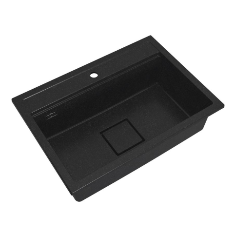 1 kép Gamma QUADRO 7050 gránit mosogató automata dugóemelő, szifonnal, fekete-szemcsés, beépíthető