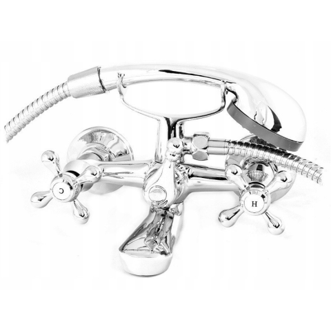 LEÍRÁS Gamma Retro CZ1 kádtöltő csaptelep zuhanyrózsával. Klasszikus, antik stílusú kétkaros csaptelep, a hideg és meleg víz különálló karokkal szabályozható, 90 fokban elfordítható négy-ágú karokkal. Elegáns hajlított íves megjelenése, valamint rusztiku