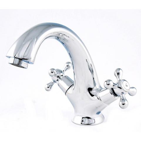 LEÍRÁS Gamma Retro CZ1 fürdőszobai mosdó csaptelep. Klasszikus stílusú kétkaros csaptelep, a hideg és meleg víz különálló karokkal szabályozható, 90 fokban elfordítható négy-ágú karokkal. Elegáns hajlított íves megjelenése jól illeszkedik antik, retro va
