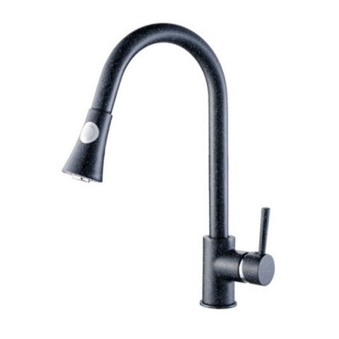 Gamma Snake csaptelep fekete mosogatóhoz, kihúzható zuhanyfejjel. Ez a csaptelep egy kiváló kombinációja a dekoratív U alakú formának és a praktikus kihúzható fejes megoldásnak. Precíz kerámia keverőszeleppel ellátott, ami ami könnyű vízhőfok állítást te