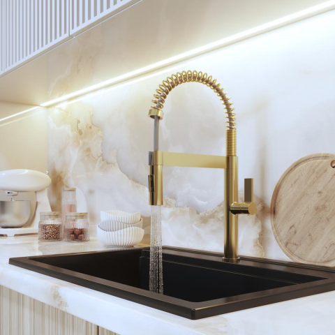 1 kép Gamma Spirál new konyhai csaptelep szálcsiszolt arany, beépíthető