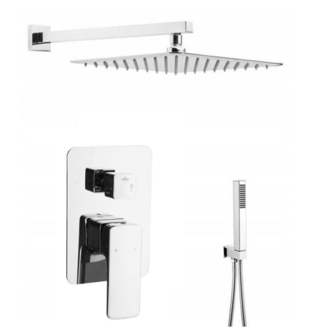 Gamma ZN6 falsík allati zuhanyszett. A készlet tartalmazza a váltókapcsolós csaptelepet, a kézizuhanyt gégecsővel és fali rögzítővel, valamint az esőztető fejzuhanyt a zuhanykarral. Szögletes formavilág, kiváló eleme egy modern vagy minimál stílusú fürdős
