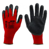 Termékleírás 13-as kötésű, piros poliészter védőkesztyű tenyerén fekete, emelt szinten csúszásbiztos latex mártás kiváló fogásbiztosság és extra tapadás szellőző kézhát, gumírozott mandzsetta Előnyök: mechanikai védelem csúszás elleni védelem kiváló