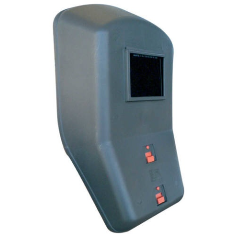 DÖNTÖTT KÉZIPAJZS 66202 • hőálló polipropilén alapanyagú kézipajzs ívhegesztéshez • könnyű: 460 gr • két ponton rögzített belső markolat, kényelmes tér a kéz számára • a pajzs mérete 280 x 470 x 120 mm • a látómező mérete 90 x 110 mm EU szabvány: EN175, E
