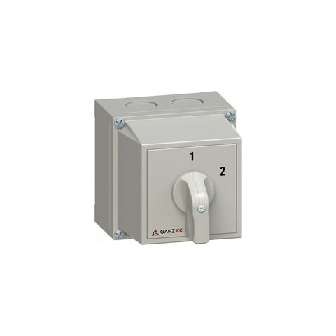 KKM0-20-6004 Átkapcsoló 0 állás nélkül, tokozott kézikapcsoló 20A, 1-2 felirat, IP65, 3P, Ganz