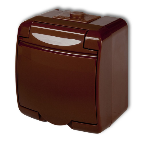 1 kép GAO 22141B Aquastar földelt dugalj, csapfedeles, falon kívüli, IP54, barna színben