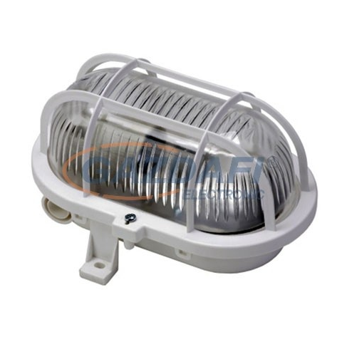 1 kép GAO 6915H Hajólámpa, ovális, műanyagráccsal 60W, fehér