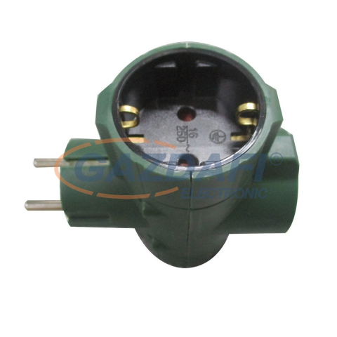 1 kép GAO 7196H Földelt T elosztó 3-as, zöld; 250V, 16A
