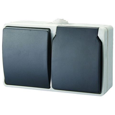 1 kép GAO Aquatop falonkívüli váltókapcsoló + dugalj vízszintes IP54 szürke