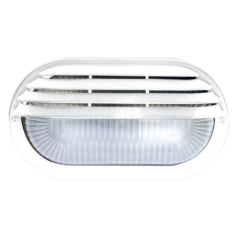 1 kép GAO Hajólámpa, ovális, félig fedett, műanyagráccsal, fehér,