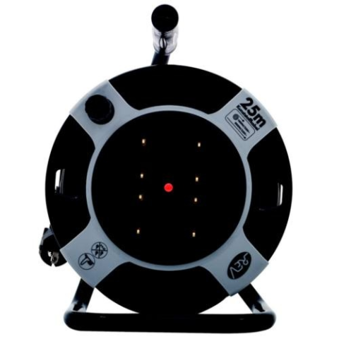 A 25 m hosszú, műanyag, H05VV 3G1,5 mm2-es, fekete-szürke színű REV Ritter kábeldob robusztus és masszív szerkezetének köszönhetően bármilyen beltéri eszköz rugalmas áramellátását biztosítja. Egy 25 méteres (H05VV-F 3G1,5 mm ) műanyag vezetékkel és szögletes védőérintkezős dugóval rendelkezik. A 4 védőérintkezős csatlakozóaljzat elegendő csatlakoztatási lehetőséget biztosít valamennyi készülékéhez. A kényelmes használatot az integrált hajtókar, a k
