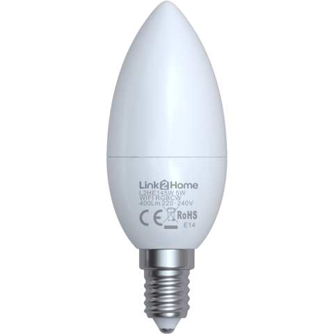 A Wi-Fi vezérelhető, Link 2 Home okos E14-es lámpa, LED-ek segítségével a hangulatának megfelelően változtatja a fényt. Válasszon fehéret (CCT 2700 - 6500K) vagy a 16 millió színváltozat egyikét. Csoportosítson több lámpát, és egyszerűen vezérelje egy szoba vagy az egész ház világítását - vagy pedig vezéreljen minden egyes lámpát külön-külön. Nincs szükség hubra - vezérlés alkalmazással vagy hanggal.