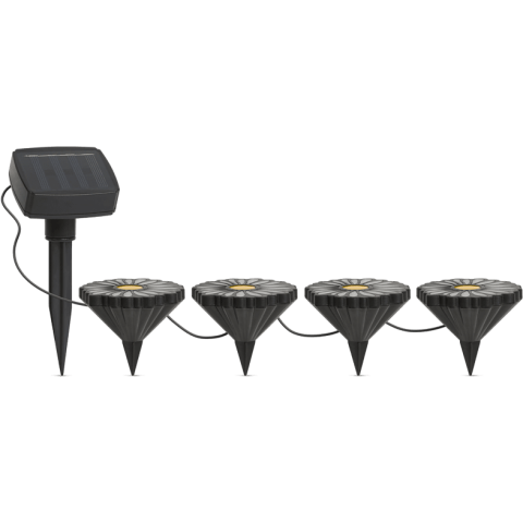 Tegye különlegessé kertjét vidám, világító virágokkal! A négy virág tetszőlegesen elrendezhető és leszúrható a tüskéknek köszönhetően. A szolár panelen keresztül nappal feltöltődik az akkumulátor, amely segítségével éjszaka világít. Amint besötétedik, a lámpa automatikusan bekapcsol, napkeltekor pedig kikapcsol. Napközben a szolárcellák a napenergiát árammá alakítják és az akkumulátorban eltárolják. Vezeték nélkül Cseppálló házzal rendelkezik