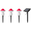 Három gombából álló napelemes lámpa szett, amely varázslatos hangulatot teremt bármely kertben. Egyszerűen szúrja le a leszúrótüskéket teljesen a földbe, így érhető el az a hatás mintha a gomba ott nőtt volna a földön. Kiváló dekorációs eszköz, amely fahánccsal borított vagy köves környezetben is jól mutat. A szolár paneles egység a rejtett elhelyezés érdekében 200 cm kábellel rendelkezik, míg a gombák között 50 cm kábel áll rendelkezésre. A gombák p