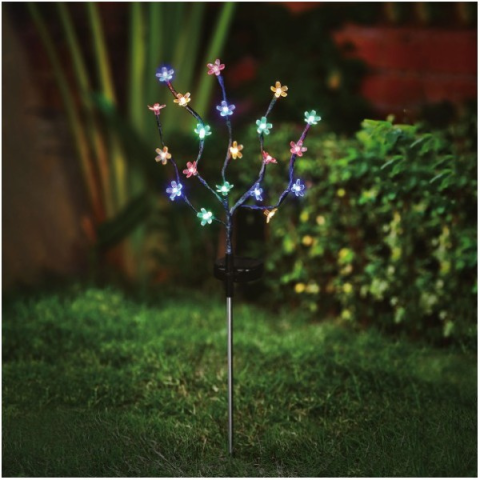 Leszúrható szolár virág, 20 színes LED, 65 cm, 11274