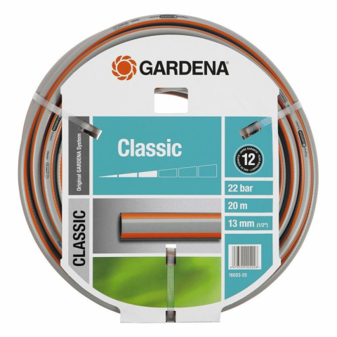 Gardena Classic tömlő (1/2) 20 m Leírás: PVC kerti tömlő. Nyomásálló és formatartó, nagy értékű szövetbetéttel. Nem tartalmaz ftalátokat és nehézfémeket.