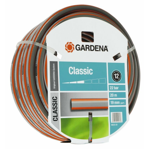 Gardena Classic tömlő (3/4) 20 m Leírás: PVC kerti tömlő. Nyomásálló és formatartó,nagy értékű szövetbetéttel. Nem tartalmaz nehézfémeket.