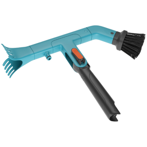 Két kaparó a hatékony tisztításhoz. Original GARDENA system csatlakozóelemmel a vízzel történőtisztításhoz. Az erős sörték kiválóan tisztítanak, különösen vízzel együtt. A munkaszög a gyorszáras rendszer használatával tetszés szerint állítható. Markolattal ellátva, így az ereszcsatorna tisztító combisystem nyél nélkül is használható.