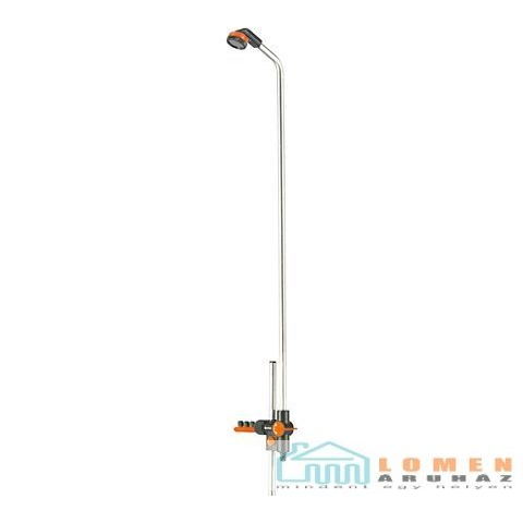 Zuhany két funkcióval: lágy zuhany vagy ködpermet. A zuhanyozás a szabadban nagyszerű élmény! A GARDENA duo kerti zuhany a leszúrótüskével könnyen a gyepbe vagy a teraszra helyezett napernyőtalapzatba szúrható. Kétféle vízsugárforma állítható be: lágy, szélessugarú zuhany vagy finoman szabályozható ködpermet, melynek rendkívüli frissítő hatása van. A zuhanyfejmagasság fokozatmentesen állítható az egyszerű nyomókapcsolóval, így a zuhany minden testmagass