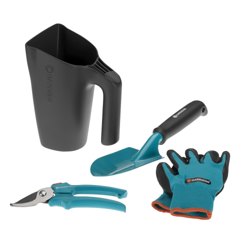 Ez a praktikus készlet tökéletes belépő a GARDENA kerti szerszámok világába. Tartalmaz egy többfunkciós műanyag kannát, amely például virágföld lapátolásához, illetve kis öntözőkannaként is használható. A készlet tartalmaz még egy viráglapátot, egy metszőollót és egy pár kesztyűt.