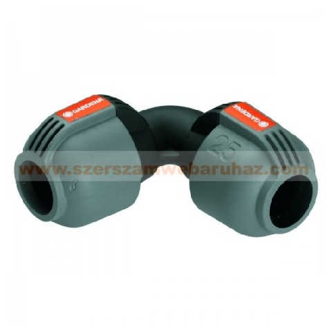 L-elem 25 mmEgyszerű irányváltoztatás A GARDENA Sprinklersystem részét képező GARDENA 25 mm-es L-elem az vezetékcső irányának megváltoztatására szolgál. A szabadalmaztatott "Klikk és Kész" gyorscsatlakozási technológiának köszönhetően az össze- és szétszerelés egyszerűen, szerszám nélkül történik - csupán a csavaros csatlakozást kell 140°-kal elforgatni. Egyszerű telepítésA szabadalmaztatott "Klikk és Kész" gyorscsatlakozási technológiának köszönhet