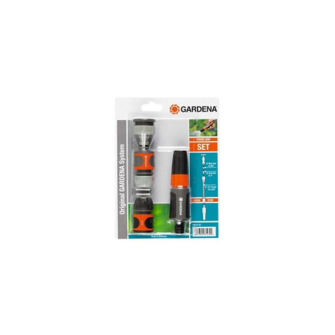 Teljes készlet gyors csap és tömlő csatlakoztatáshoz A GARDENA indulókészlet tartalma: csapelem adapterrel (cikkszám: 18202 és 5305), tömlőelem (cikkszám: 18215), vízmegállító (cikkszám: 18213) és tisztító öntözőfej (cikkszám: 18300). A készlet minden szükséges Original GARDENA System rendszerelemet és egy tisztító öntözőfejet biztosít a tömlő azonnali használatához.