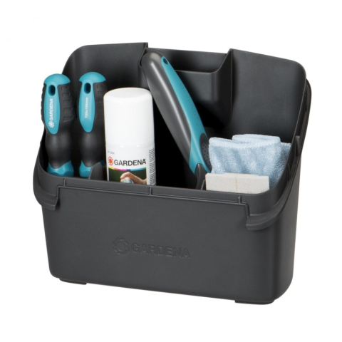 GARDENA Robotfűnyíró Karbantartó és Tisztító Készlet: Tartsa robotfűnyíróját csúcsformában! 🤖 Ez a GARDENA készlet mindent tartalmaz, amire szüksége van robotfűnyírója karbantartásához és tisztításához. Könnyen használható eszközök egy praktikus tár...