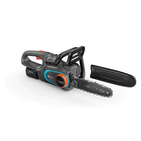 Gardena akkumulátoros láncfűrész PowerSaw 250/18V P4A - készlet (14790-20) A láncfűrész csendes, kefe nélküli motorral és  akkumulátorral rendelkezik, amely 8 m/s láncsebességet biztosít . A fűrész 0,95 cm-es (⅜")* * Oregon® láncot és  25 cm hosszú kardot használ . A fűrész hatékonyságát növeli a  keskeny, 1,1 mm vastag vágású vágórendszer , mert nem igényel sok energiát a klasszikus vágórendszerekhez képest, más láncfűrész-modellekhez is alkalmas,