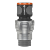 A minőségi fémből és műanyagból készült GARDENA Premium tömlőelemmel gyorsan és kényelmesen csatlakoztatható a tömlő. A beépített csavarodáselleni védelem megakadályozza a tömlő kicsúszását. 19 mm-es (3/4") tömlőkhőz.
