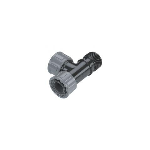 Gardena T-elem a helytakarékos szelepcsatlakozáshoz. Egyszerű csavaros csatlakozás. 2x1" belső és 1x1" külső menettel