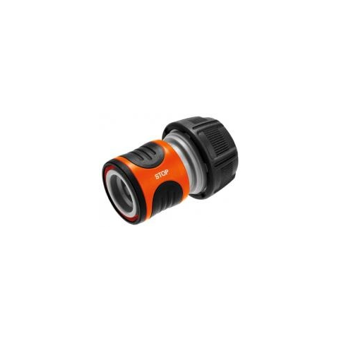 A Gardena vízmegállítót a tömlő végéhez kell csatlakoztatni. A locsolóeszköz, kézi locsoló vagy esőztető szétkapcsolása esetén, a vízátfolyás automatikusan megszűnik, az eszköz csatlakoztatásakor a víz újra elindul, aminek az előnye, hogy megspórolhatja az utat a vízcsapig, a locsolóeszközök cseréje esetén. A vízmegállító 19 mm (3/4") méretű tömlővel kompatibilis.POWER GRIP: az egyedi formájú hollandi anyának köszönhetően különösen jól tar