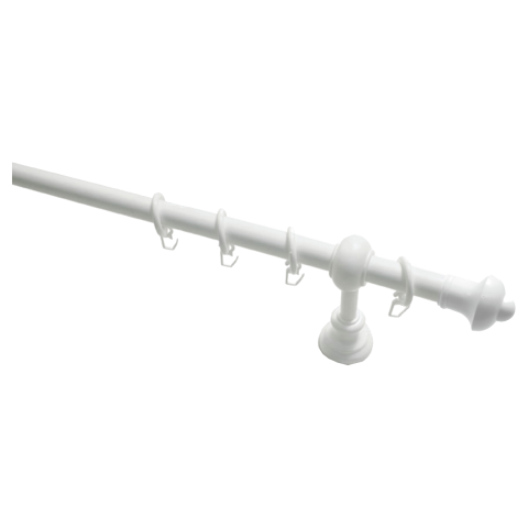Műanyag karnisszett Bifo - anyaga: fém rúd műanyaggal bevonva, a kiegészítők műanyagok - 200cm - átmérő: 28mm - fehér A szett tartalma: - 1db karnisrúd - 2db falitartó (egyenként 17cm hosszúságúak) - 2db végzáró - karika ráncszedő akasztóval (10cm-ként 1db feltétele ajánlott) - csavarok, tipli