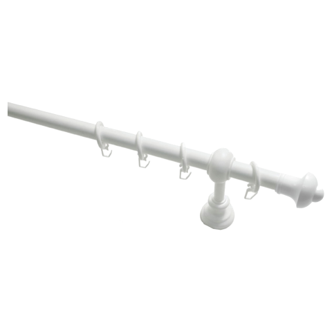 Műanyag karnisszett Bifo - anyaga: fém rúd műanyaggal bevonva, a kiegészítők műanyagok - 250cm - átmérő: 28mm - fehér A szett tartalma: - 1db karnisrúd - 2db falitartó (egyenként 17cm hosszúságúak) - 2db végzáró - karika ráncszedő akasztóval (10cm-ként 1db feltétele ajánlott) - csavarok, tipli