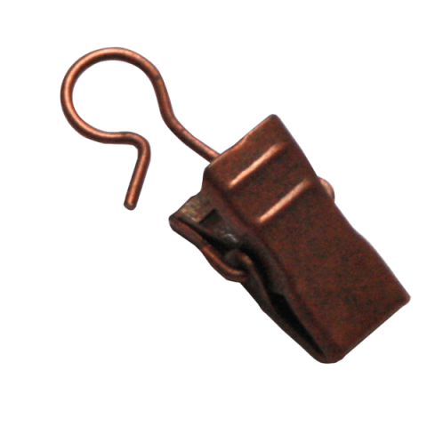 Fém csipesz, fém akasztóval függönykarikákhoz, 10db, bronz színben.