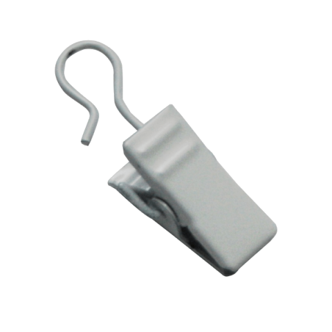 Fém csipesz, fém akasztóval függönykarikákhoz, 10db, fehér színben.