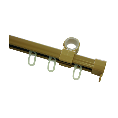 Duplázósín fa karnisokhoz - bézs - 110cm - fém - a fa karnisok kiegészítője (másod rúdként is alkalmazható) - mérete mindig 10cm-rel rövidebb, mint a karnisrúd, amihez kapcsolódik A csomag tartalma: - végkupak - karnis tartó konzol - görgők akasztóval (10cm-ként 1db)
