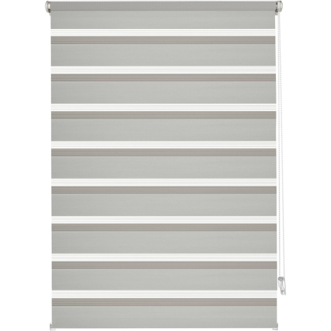A Gardinia Easyfix 45 cm x 150 cm-es, szürke dupla roló rögzítősínnel, fúrás és csavarozás nélkül rögzíthető az ablakszárnyon. Az állítható csíptetős tartók csaknem minden ablakszárnyra felhelyezhetők. Ezen kívül lehetséges a mennyezetre vagy falra történő felszerelés is. A csavaros szereléshez szükséges rögzítőanyag a csomag részét képezi. Az anyag felváltva tartalmaz átlátszó és átlátszatlan csíkokat, amelyek egymáson futnak, ezáltal érdekes f
