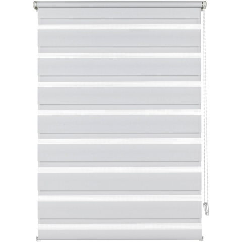 A Gardinia Easyfix 60 cm x 150 cm-es, fehér dupla roló rögzítősínnel, fúrás és csavarozás nélkül rögzíthető az ablakszárnyon. Az állítható csíptetős tartók csaknem minden ablakszárnyra felhelyezhetők. Ezen kívül lehetséges a mennyezetre vagy falra történő felszerelés is. A csavaros szereléshez szükséges rögzítőanyag a csomag részét képezi. Az anyag felváltva tartalmaz átlátszó és átlátszatlan csíkokat, amelyek egymáson futnak, ezáltal érdekes f