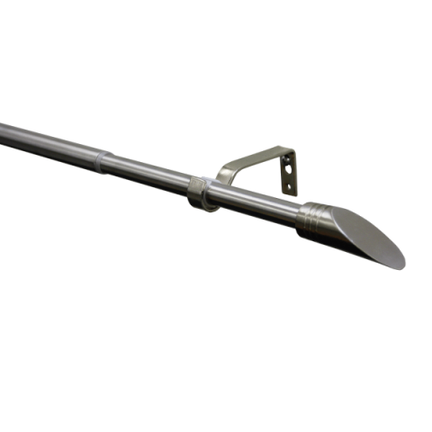 Ellipse karnisrúd fém 120-210cm Ø 19/16mm, kihúzható, fém konzollal és fém végfejekkel, rögzítő anyaggal együtt, függönykarikák nélkül, konzol hossza (a függönyrúd faltól való távolsága) 8 cm. Nemesacél hatású.