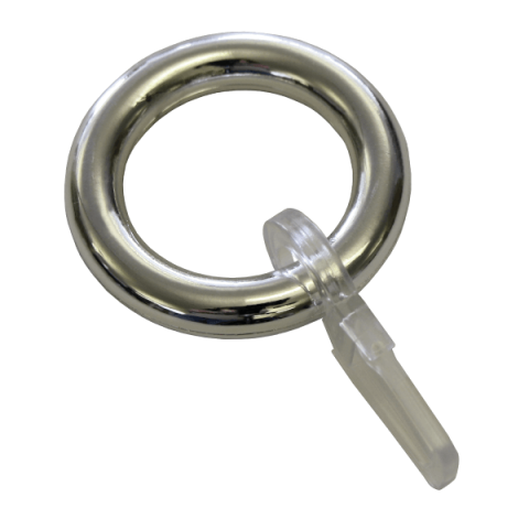 Függönykarika akasztóval, 12 mm, króm színben. Műanyag, ráncszedő akasztóval, belső átmérő Ø 23