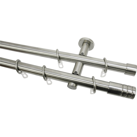 1 kép Gardinia függönyrúdkészlet 2 pályás henger rozsdamentes acél hatású 160 cm