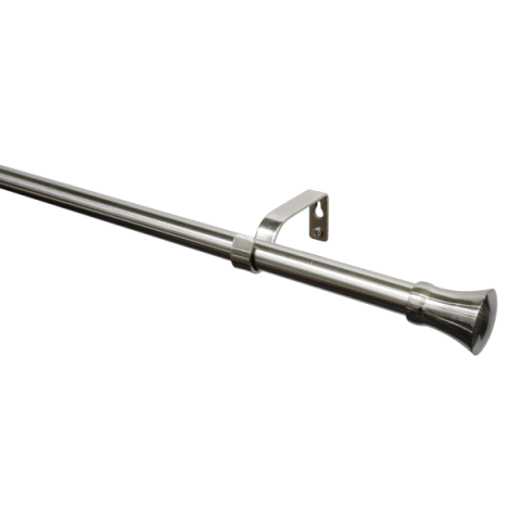 Konus karnisrúd fém 190-340cm Ø 19/16mm, kihúzható, fém konzollal és fém végfejekkel, rögzítő anyaggal együtt, függönykarikák nélkül, konzol hossza (a függönyrúd faltól való távolsága) 8 cm. Nemesacél hatású.