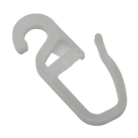 Ráncszedő akasztó - pom = poli(oxi-metilén) minőség: erősebb keménység - 16mm átmérőjű karnisrudakhoz - fehér, műanyag