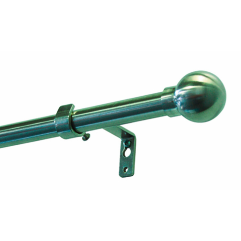 A variálható, gömbös Gardinia stílusos karnisgarnitúra kiváló minőségű fémből készül, megjelenése rozsdamentes acél hatású, és különböző hosszúságú kivitelekben kapható. A készlet egy darab 16 / 19 mm átmérőjű kihúzható rúdból, két dekoratív végzáróból és a megfelelő tartókonzolokból áll. A tartókonzolok hossza 8 cm.